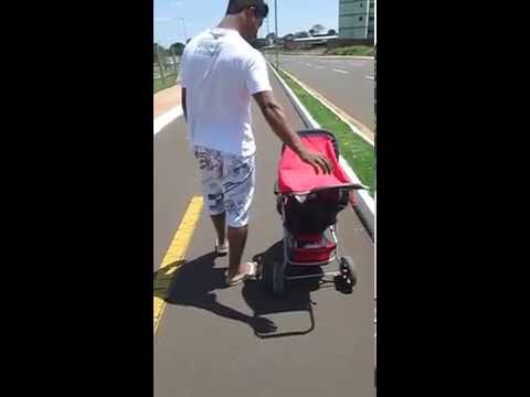Papai doido...olha como empurra o carrinho do bebe......